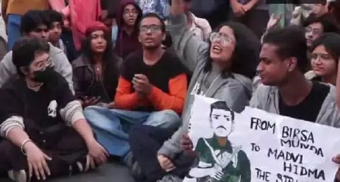 प्रदूषण के खिलाफ नारे लगाने के बीच अचानक कुछ प्रदर्शनकारी माडवी हिडमा अमर रहे के नारे लगाने लगे. हिडमा वही कुख्यात नक्सली कमांडर है जिसकी हाल ही में सुरक्षा बलों के साथ मुठभेड़ में मौत हुई थी. हिडमा के पोस्टर और नारे सामने आते ही यह प्रदर्शन तुरंत विवादों में आ गया. इस घटना का वीडियो भी सोशल मीडिया पर तेजी से वायरल हो रहा है.एक प्रदर्शनकारी ने कहा, “हिडमा एक आदिवासी है जिसने अपने हक के लिए लड़ने के लिए हथियार उठाए. लोग इस तरीके से सहमत नहीं हो सकते और इसे गलत कह सकते हैं, लेकिन वे इसके पीछे के कारण को नकार नहीं सकते. कॉर्पोरेटाइजेशन के खिलाफ लड़ाई आदिवासियों की लड़ाई है. यह पानी, जंगल और जमीन की लड़ाई है. इस वजह से, नारायण कान्हा को एंटी-नेशनल नहीं कहा जा सकता. जो लोग अपने हक की रक्षा कर रहे हैं, उन पर ऐसा ज़ुल्म नहीं किया जा सकता…”